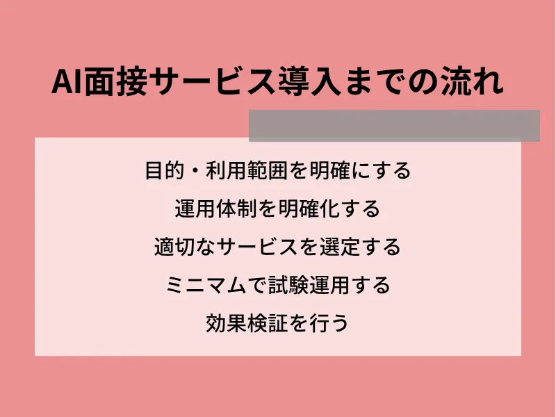 AI面接サービスを導入する際は、闇雲に進めるのではなく、段階を踏んで計画的に行うことが成功へのカギとなります。