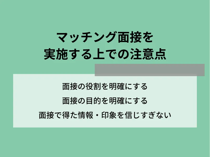 しかし、その性質上、実施方法を誤ると本来の目的を果たせません。ここでは、マッチング面接を行う際に押さえておきたい3つの注意点について解説します。