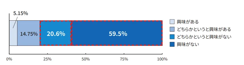 一方で、若年層の業界離れや志望度の低下が深刻化しています。全日本不動産協会の「担い手確保に関する実態調査」では、不動産業界で働くことに興味あると回答した人は約2割にとどまっています。興味がない・どちらかというと興味がないと答えた人を合わせると8割を超えていました。