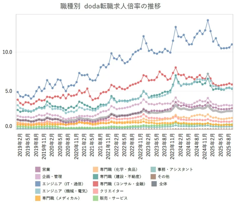 (引用:doda「業界別マーケットレポート 不動産業界(2025年9月)」)