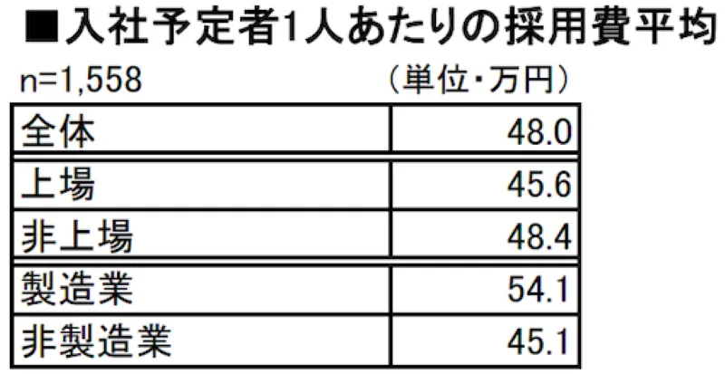 また、入社予定者1人あたりの採用費の平均は、2019年の48万円に対し、2024年では56.8万円まで上昇しています。