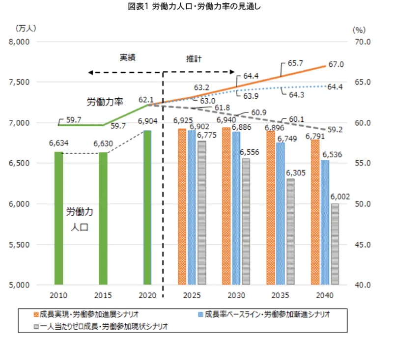 今後は人口減少に伴い、今の状況が続く限り労働力人口も減少すると言われています。